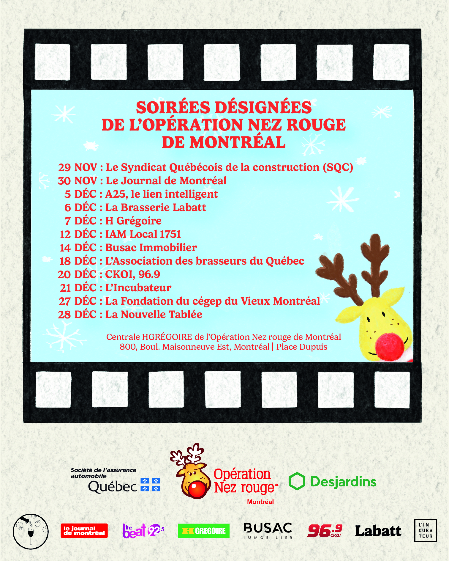 Dans le cadre des soirées désignées, toute entreprise peut devenir un partenaire privilégié de l’Opération Nez rouge de Montréal le temps d’une soirée!